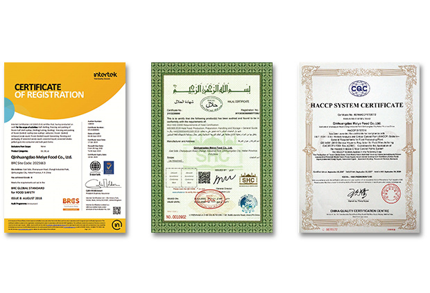 美燁所用設(shè)備設(shè)施均按出口食品生產(chǎn)企業(yè)注冊衛(wèi)生規(guī)范要求設(shè)計安裝,本公司已經(jīng)通過美國HACCP、英國BRC、清真HALAL認(rèn)證,并在美國FDA、歐盟、俄羅斯等注冊備案,現(xiàn)...